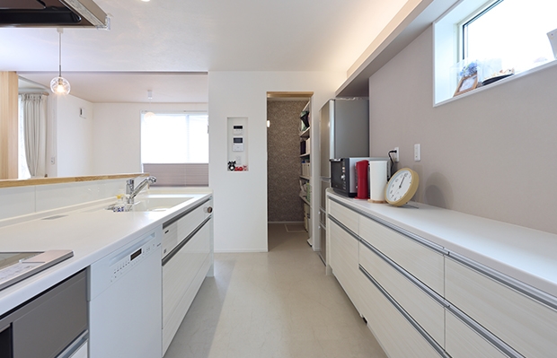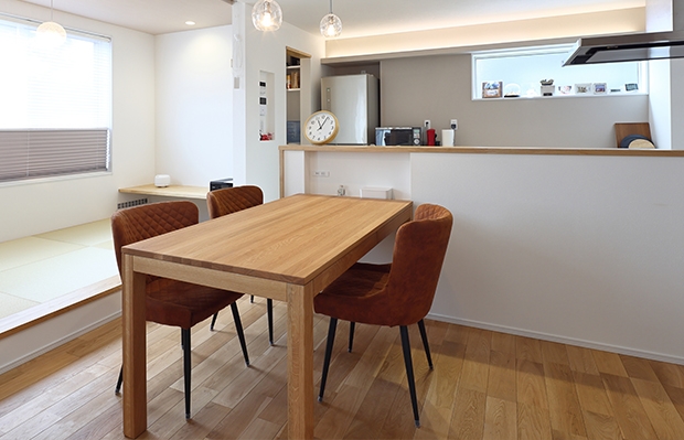 間取りも住みやすくて、大満足。キッチンに立つと、リビングや小上がりにいる子どもの様子が分かるので、いつも気にかけてあげることができます。洗濯の一連の流れが一ヶ所で叶うランドリールームや回遊導線を設けたことで、家事の負担も軽減できました。家族の時間を大切にできてうれしい!改めて、親身に対応してくれた担当さんに感謝です。最初から「素敵な家が建つ」という予感でいっぱいでした。
